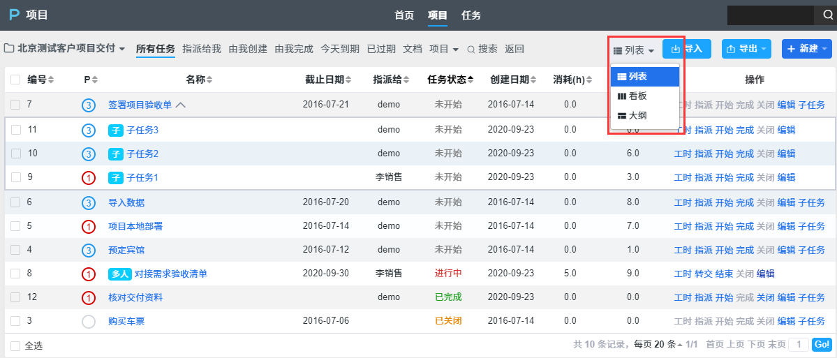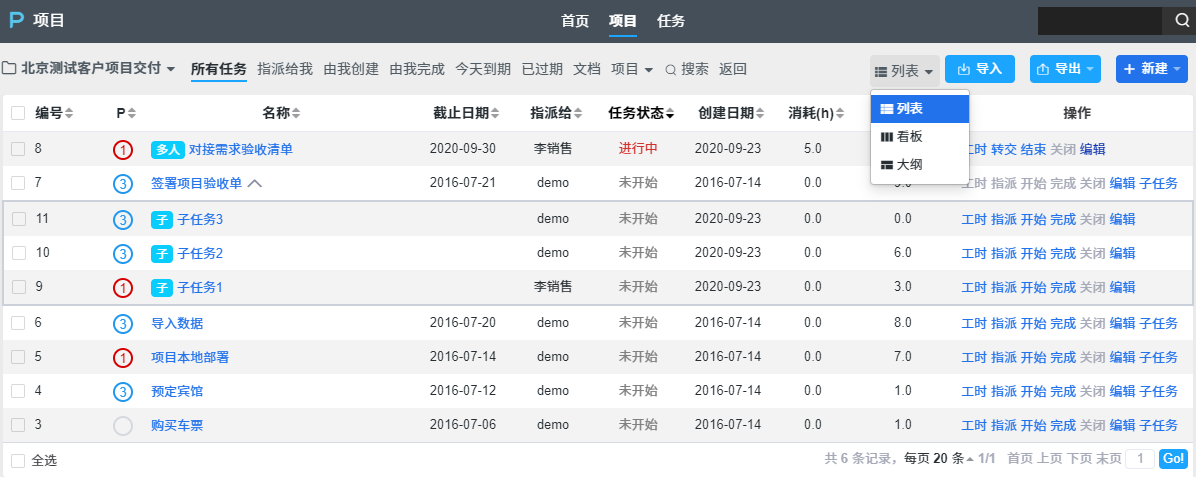 ZDOO的项目管理提供了三种视图来方便大家掌握任务的情况,这三种视图分别是:列表、看板和大纲。下面让我们来一一了解下。