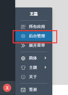 只有超级管理员登录后才会在左下角的个人菜单中显示“后台管理”的入口,也就是只有超级管理员才有权限操作后台管理的各项设置。