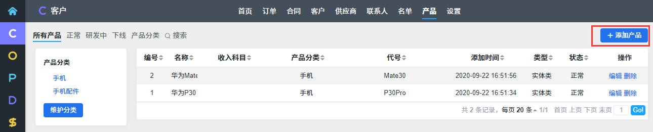1.产品分类可以到 CRM-->产品或设置-->产品分类 中自定义添加,并支持多级分类。添加成功后产品分类下拉选择里会显示,选择自己需要的即可。(4.6.1版本开始产品线改为产品分类)