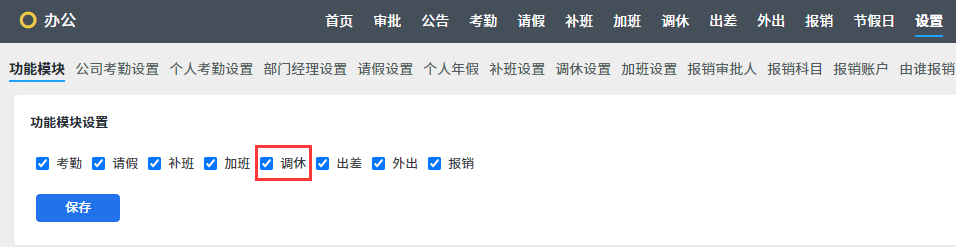 首先在设置中开启调休管理功能。