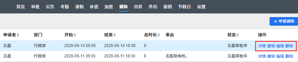 调休管理