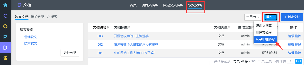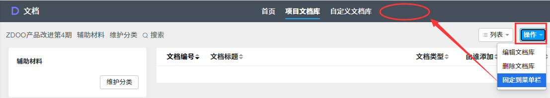 文档库支持固定为导航 菜单,用户可以把常用的文档库固定到菜单,访问更便捷。