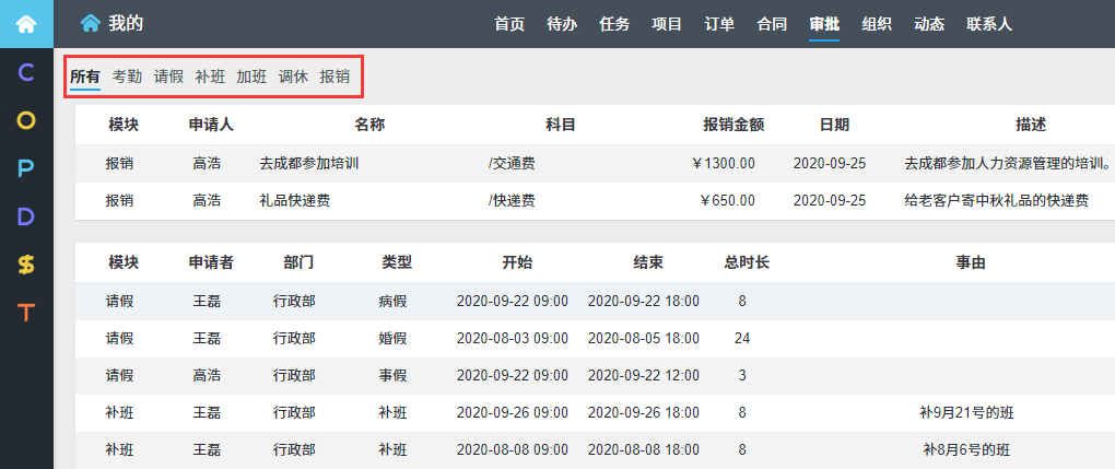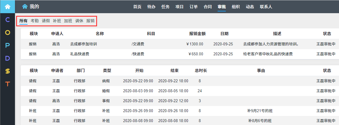 此外审批的事项还可以在我的地盘里的审批里查看到。