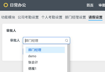 补班审批人,调休审批人,加班审批人的设置与这个差不多,可以参考就不再截图展示。