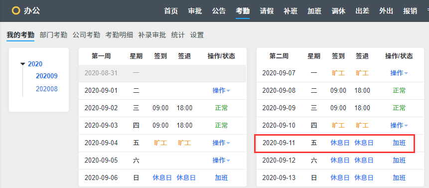 方便节假日和调休 补班的考勤。