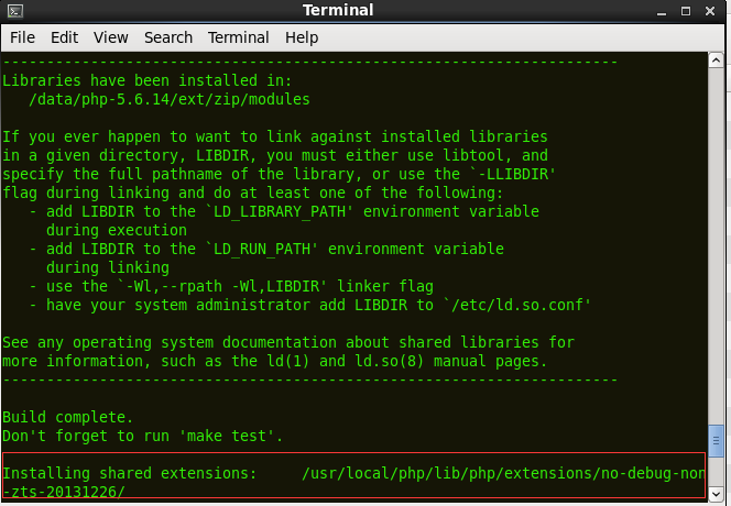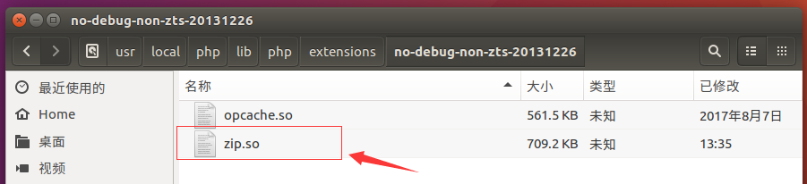 这时候zip.so就已经在/usr/local/php/lib/php/extensions/no-debug-non-zts-20131226/目录下生成了