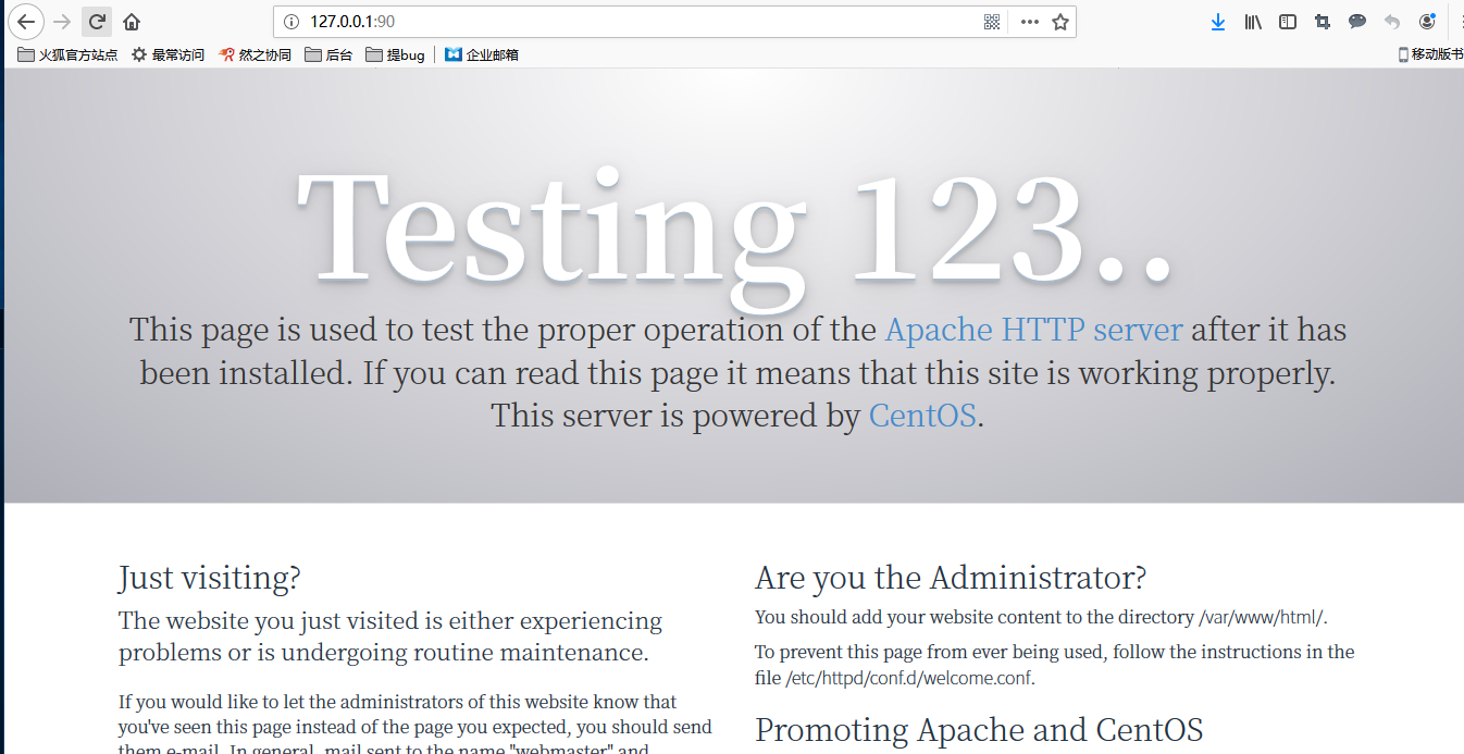 //查看系统中已安装的所有apache软件包列表 [root@localhost ~]# rpm -qa |grep httpd [root@localhost ~]# //未安装apache或已完全卸载 [root@localhost ~]# rpm -qa |grep httpd [root@localhost ~]# httpd-tools-2.4.6-93.el7.centos.x86_64 //已安装apache [root@localhost ~]# httpd-2.4.6-93.el7.centos.x86_64 //已安装apache //卸载apache软件包 --nodeps是指卸载软件时,忽略依赖关系 [root@localhost ~]# rpm -e --nodeps httpd //安装apache(yum源安装) //安装完成后,再用 rpm -qa |grep httpd,查看apache是否已安装成功 [root@localhost ~]# yum install httpd //查看apache状态 [root@localhost ~]# systemctl status httpd //启动apache [root@localhost ~]# systemctl start httpd //停止apache [root@localhost ~]# systemctl stop httpd //开机自启apache [root@localhost ~]# systemctl enable httpd //开机不自启apache [root@localhost ~]# systemctl disable httpd验证httpd是否安装成功,浏览器访问 http://ip:port
