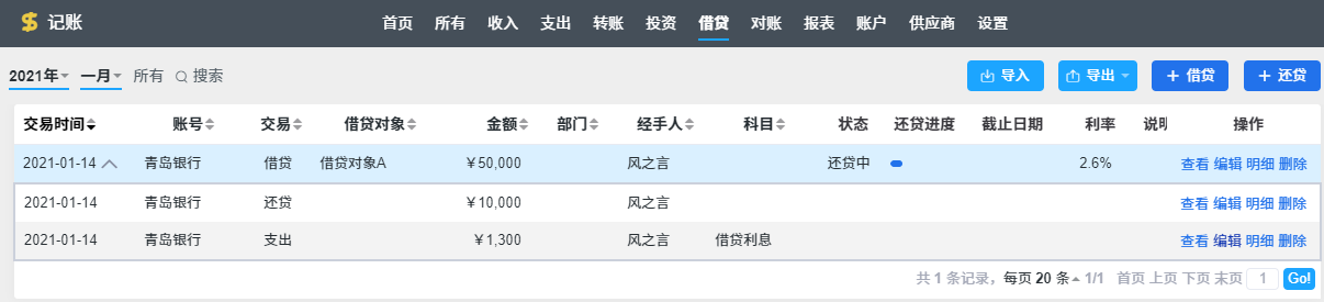 记账应用中可以记借贷和还贷,查看还贷状态、还贷进度和利率。