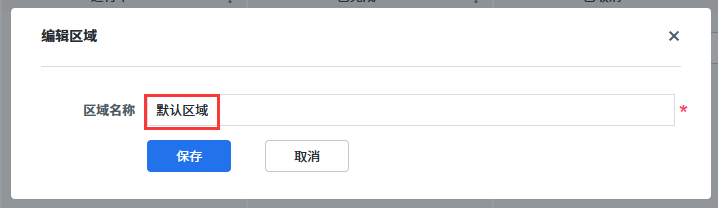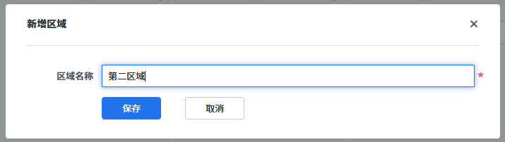 选择【新增区域】,弹出新增区域的确认弹窗,填写区域名称后点击【保存】即新增了一个区域。