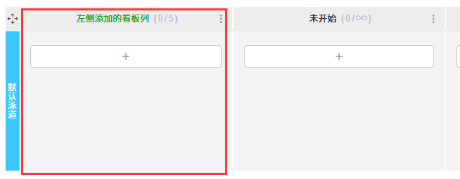 点击【保存】后新增的看板列显示在当前看板列的左侧。同理,执行【在看板列右侧添加看板列】操作则会在在当前看板列右侧新增看板列。新增的看板列会显示设置的颜色和在制品数量。