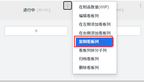 在无任务状态的看板列项目中新增看板列,除了通过在左侧/右侧添加看板列的方式,还可以通过复制看板列的方式来实现。