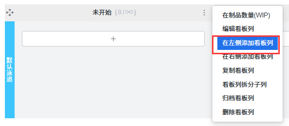 无任务状态的看板项目,有添加看板列的权限时,可以在看板列设置菜单中点击【在左侧添加看板列】/【在右侧添加看板列】来新增看板列。