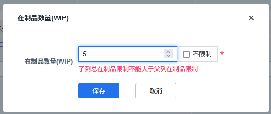 在设置子列在制品数量时需要注意,子列在制品数量之和不能超过总在制品数量,否则无法保存。
