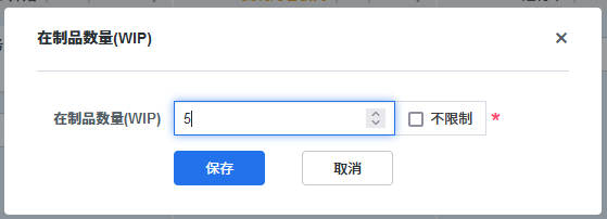 在看板列设置菜单中选择【在制品数量】,默认状态下在制品数量为“不限制”,可以修改为大于等于1的整数。