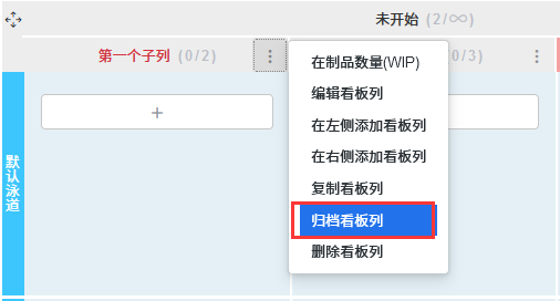 看板列的归档操作是指将当前看板列隐藏,不在看板上继续显示。看板的主列和子列均可归档。