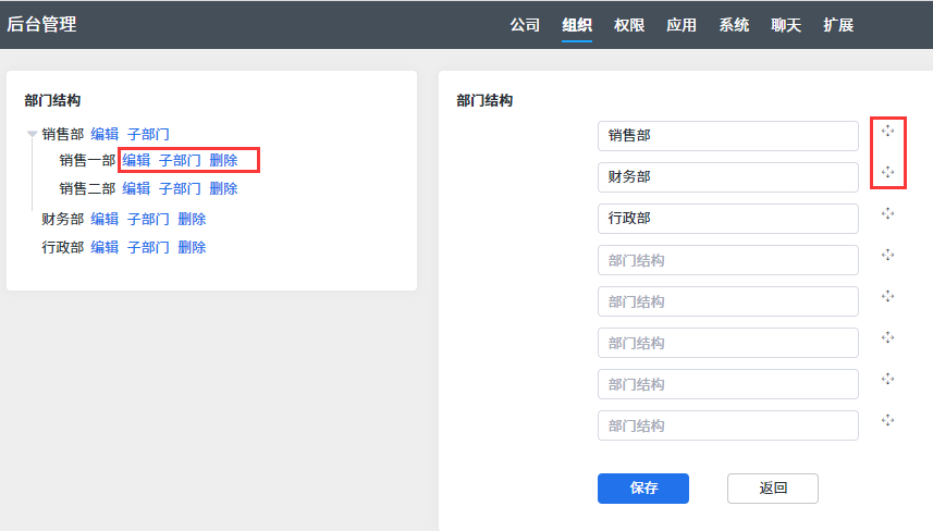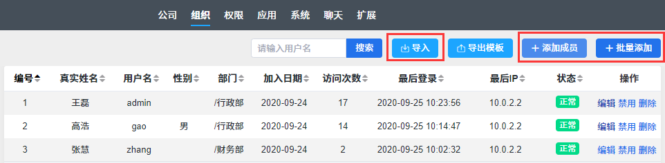 添加成员和维护部门结构