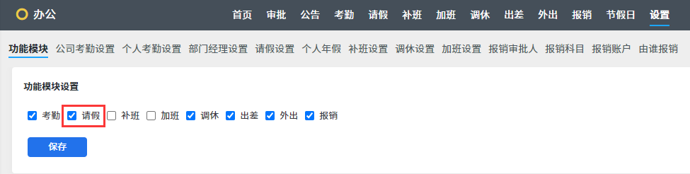 ZDOO3.2版本开始,可以设置是否开启请假功能。