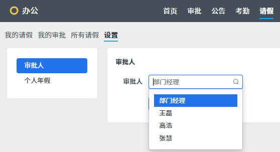 请假审批人默认为“部门经理”,管理者可以修改审批人。