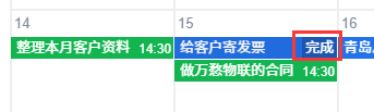 点击某个日期下,待办事务标题右侧的完成按钮,即可把事务的状态更改为完成。