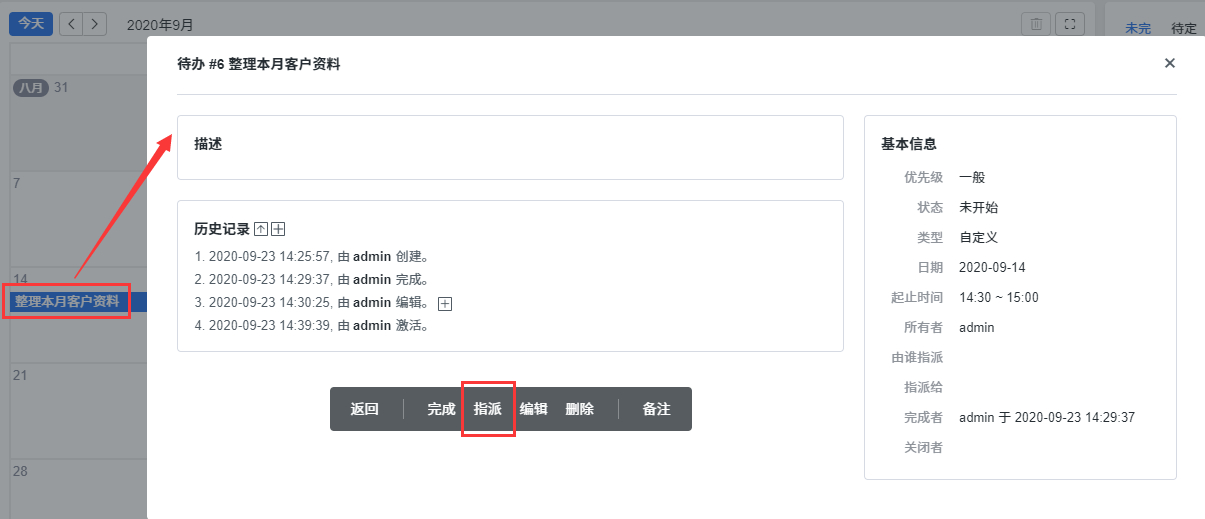 点击待办日历里需要指派的待办标题,即可进入待办的详情页面。