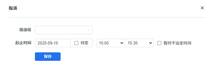 指派给下拉框里显示的是系统中所有的用户。还可以根据实际设定具体的起止时间。