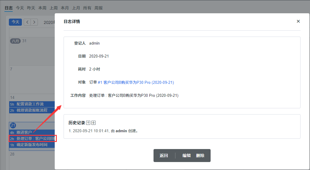 添加工作日志的时候,我们系统会自动扫描当天与任务,待办,客户,订单,合同相关的操作记录,拼装成工作日志,这样可以大大节省添加日志的时间。