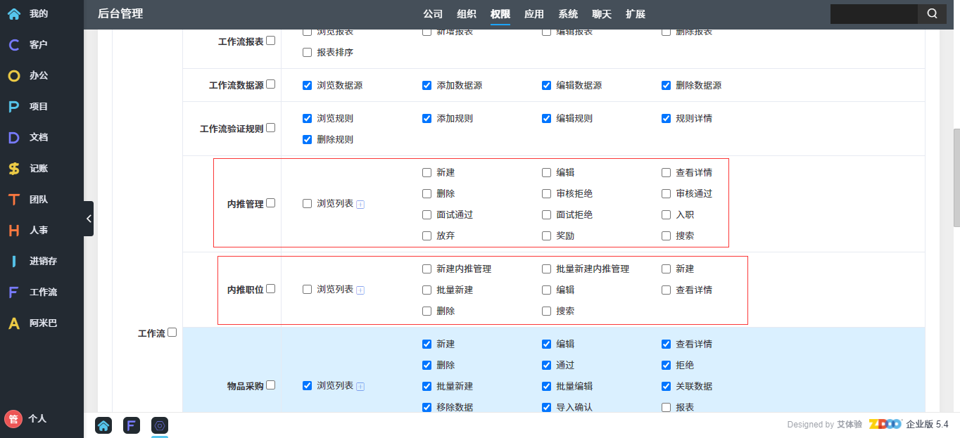 标签管理配合zdoo后台权限设置,实现权限配置。
