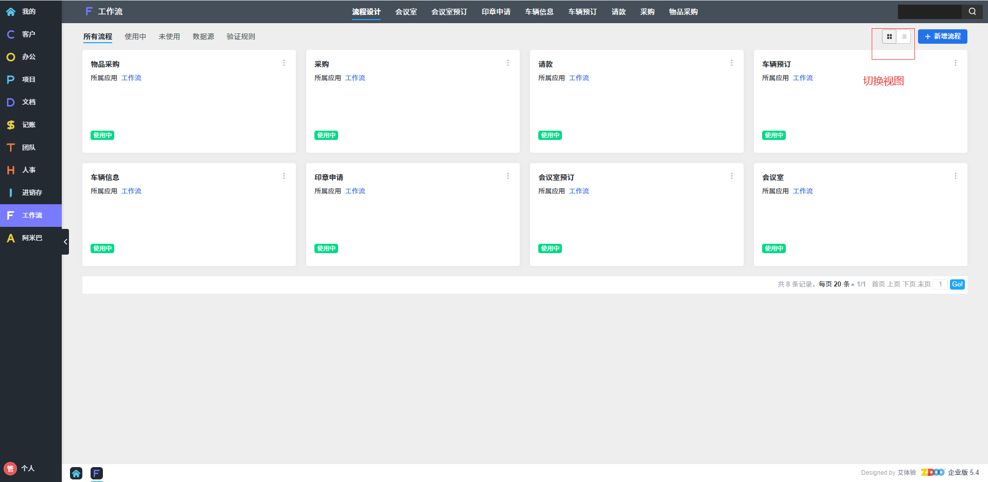 工作流模块中内置了几个常用流程供大家使用,也可以为大家搭建工作流提供一定的参考。