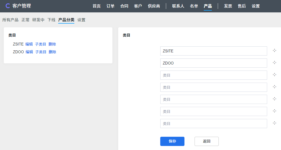 产品较多时可以通过分类进行管理,添加产品时选择对应的分类。