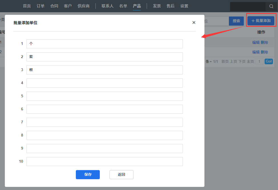 产品设置中可以批量添加产品的单位和规格,这样在添加产品时就可以选择对应的单位和规则了。