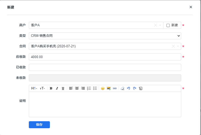 CRM中合同签约时会自动生成一笔应收款,合同编辑、回款、取消、删除时会更新对应的应收款。
