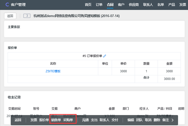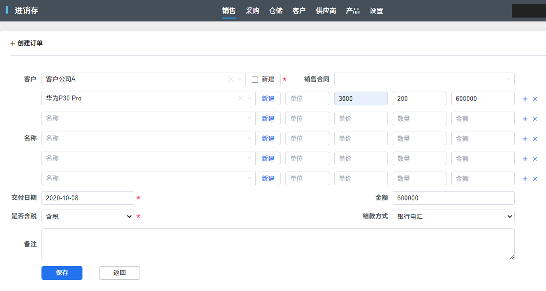 进销存中的销售单来源有两种方式,一种是在销售模块直接创建,另一种是通过CRM的合同创建。