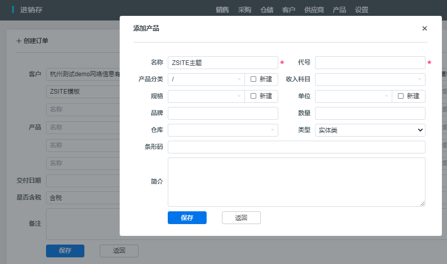 如果订单产品还未添加到系统中,可以在新建订单页面点击“新增库存产品”直接添加产品。
