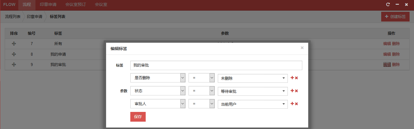 3.工作流可以自定义检索标签,列表页可以显示自定义检索标签,并根据检索条件显示相应内容