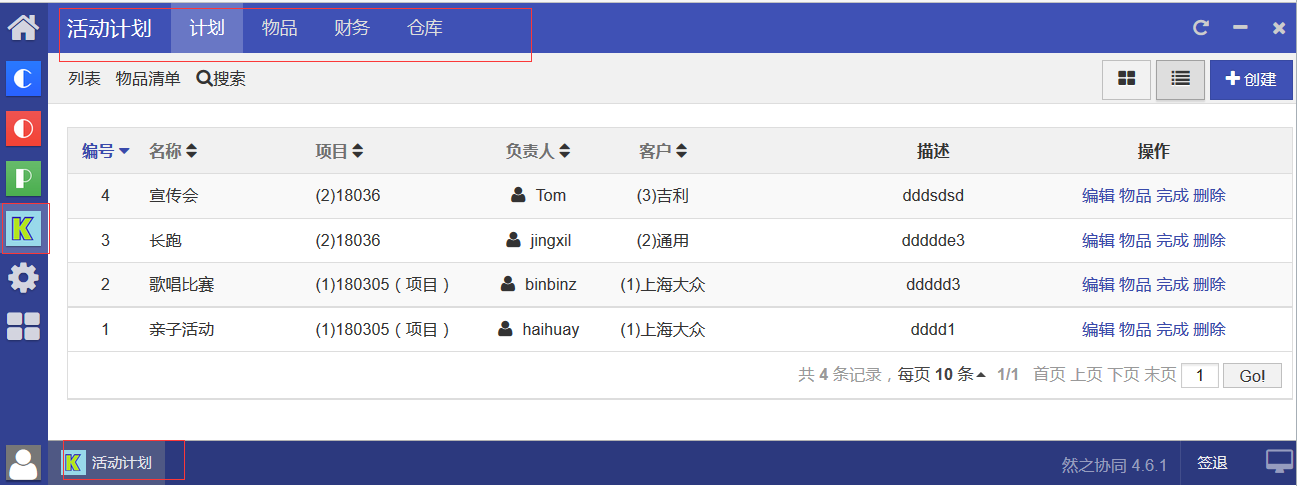 公司举办的活动,记录活动信息,记录物品耗材信息