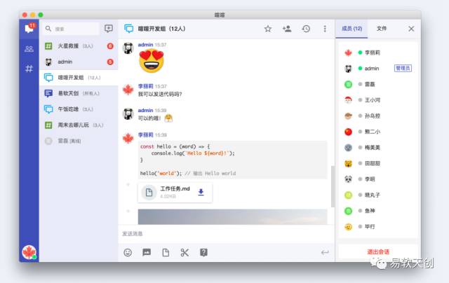 除此,ZDOO系统还集成了最新版的喧喧。 喧喧是由ZDOO团队推出的轻量级、跨平台的开源企业即时通信软件。喧喧可以当作协同软件的一个延伸和补充。