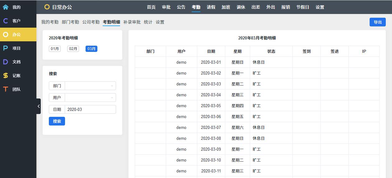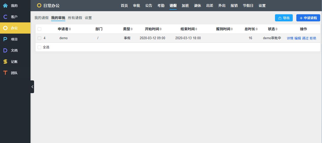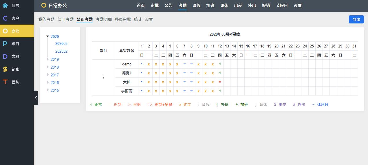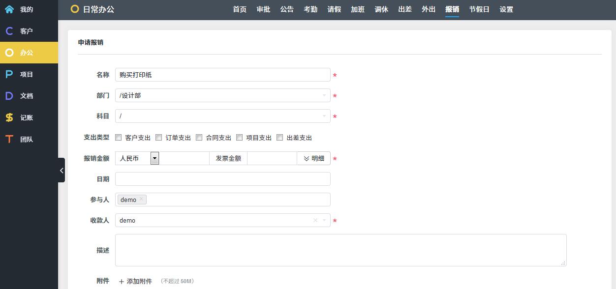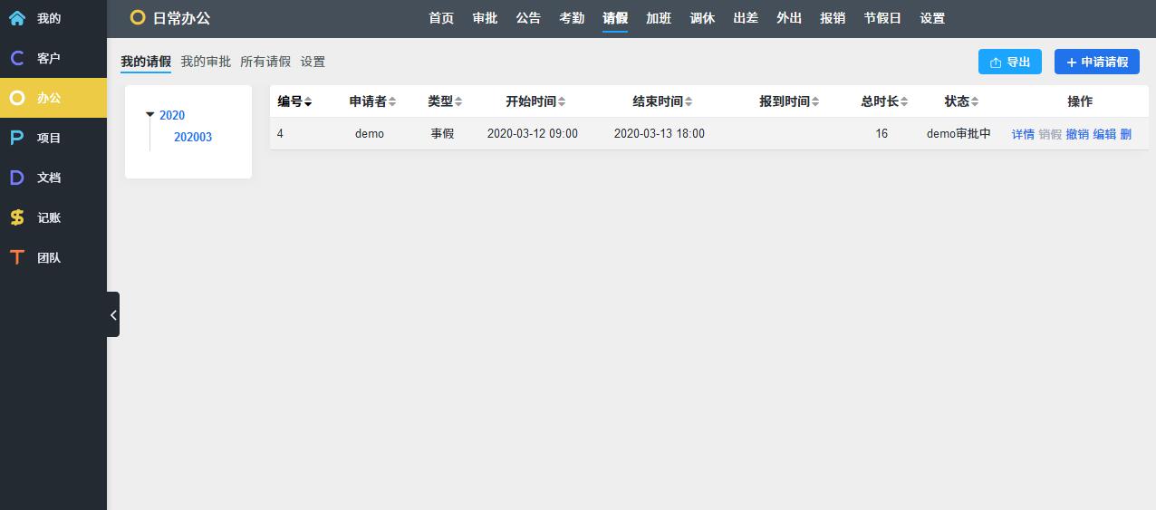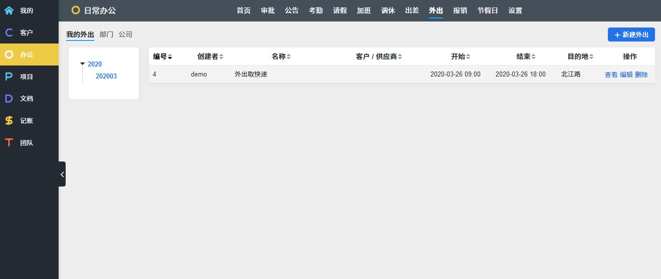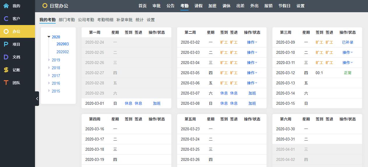 O: OA办公,考勤请假报销