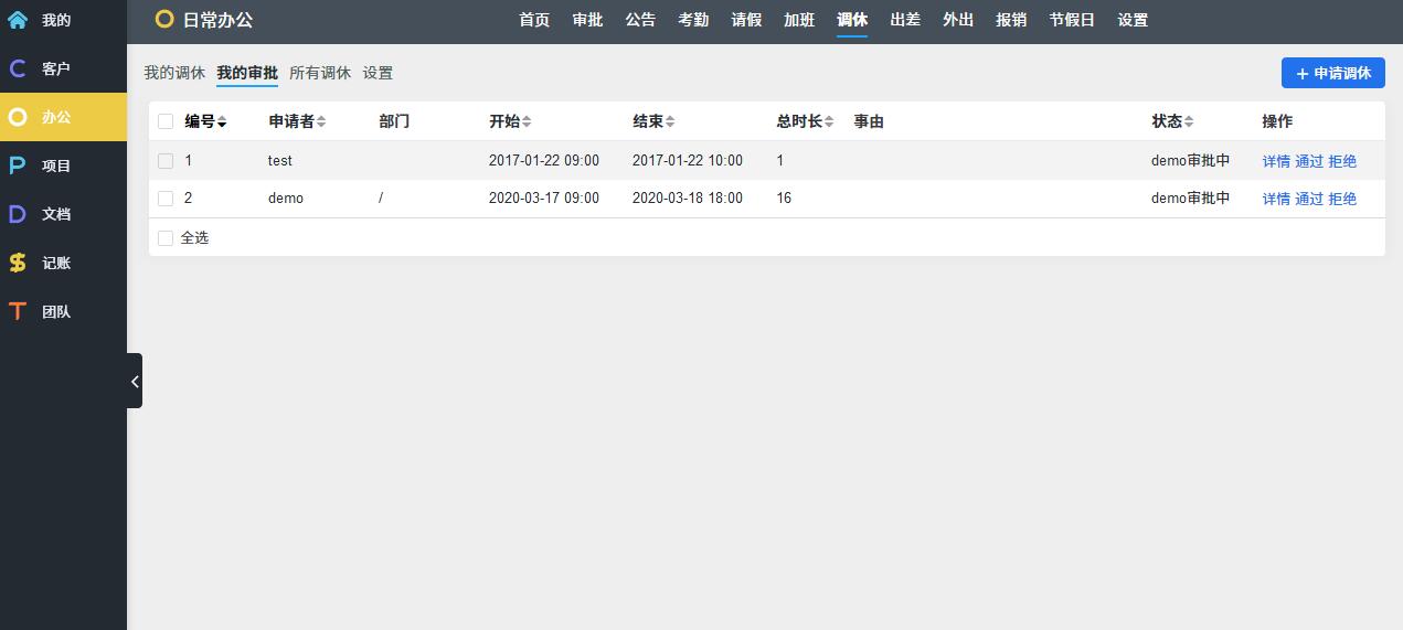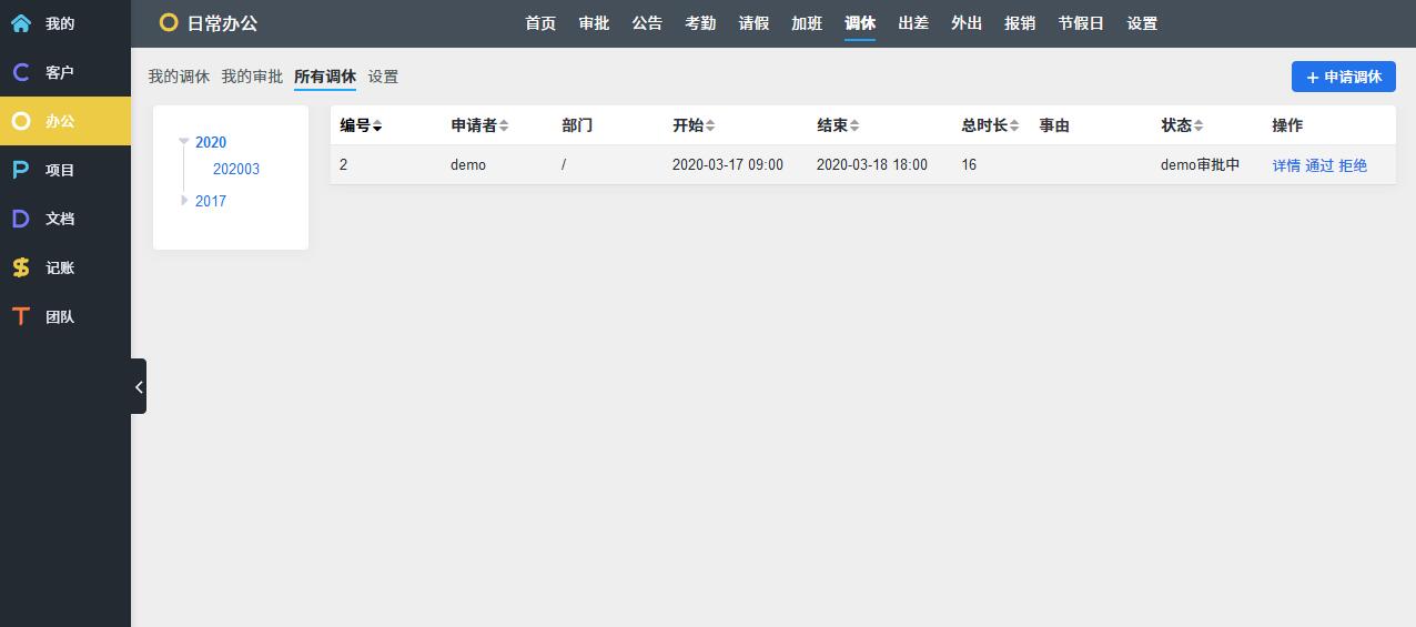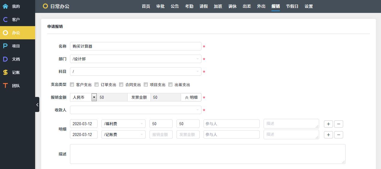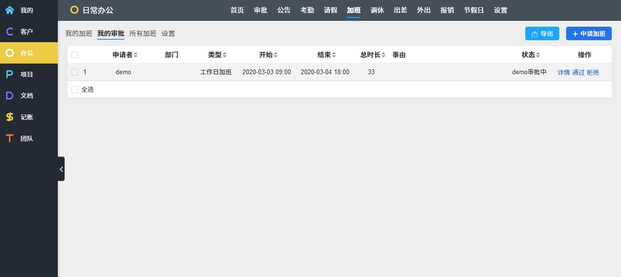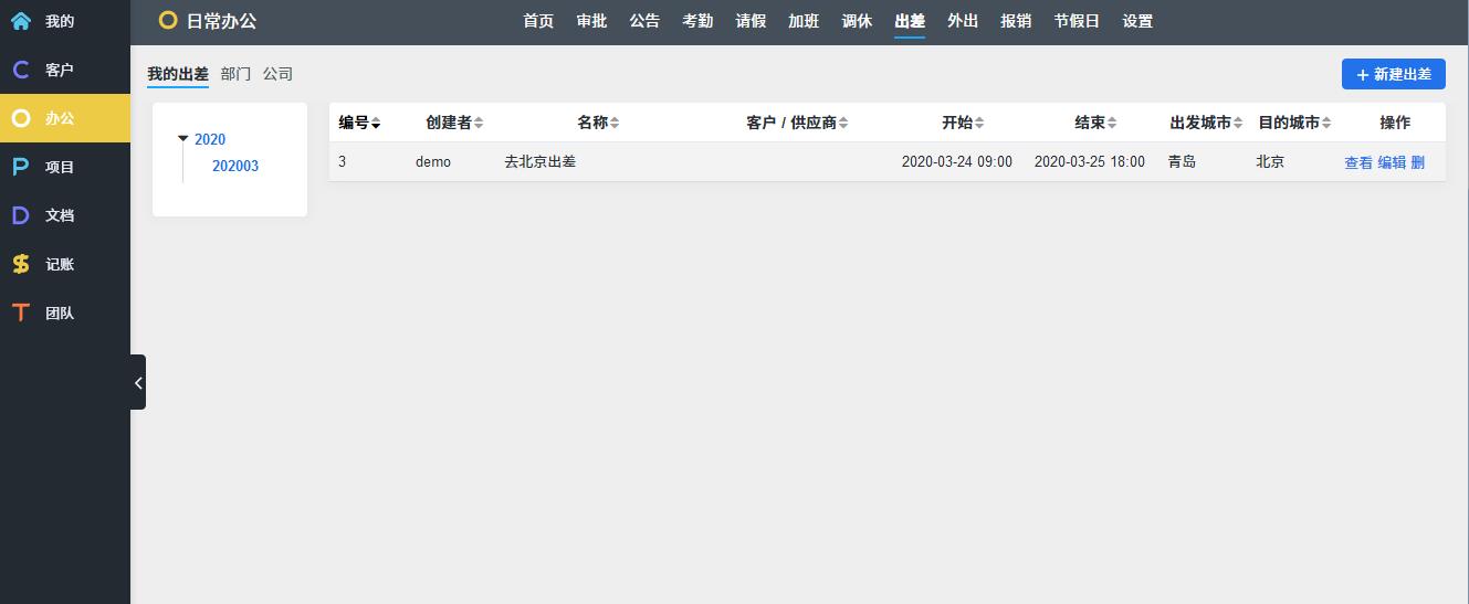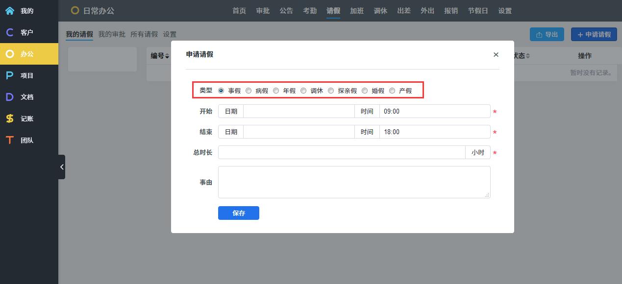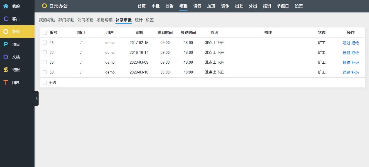 O: OA办公,考勤请假报销