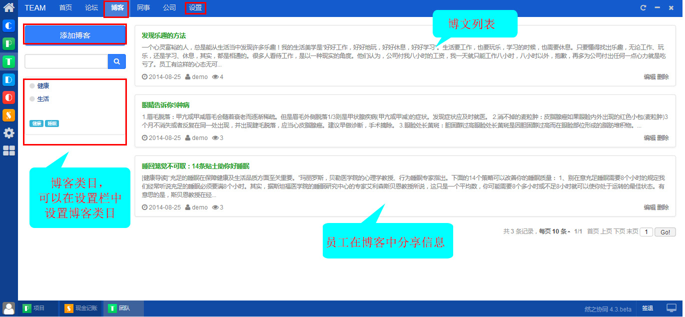 1.论坛:为公司员工提供一个内部交流、讨论的平台。