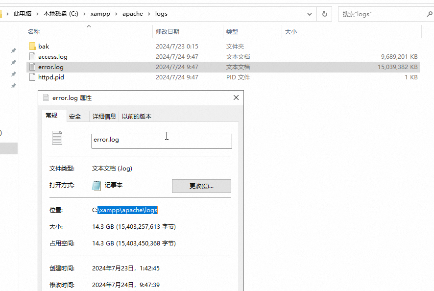 1、安装zdoo8.5 社区版,最近使用发现 在 xampp/apache/logs 目录下面有2个日志文件很大,二天时间就达到几十个G,把存储空间占满了。不得不每天进行手动删除才能正常使用。