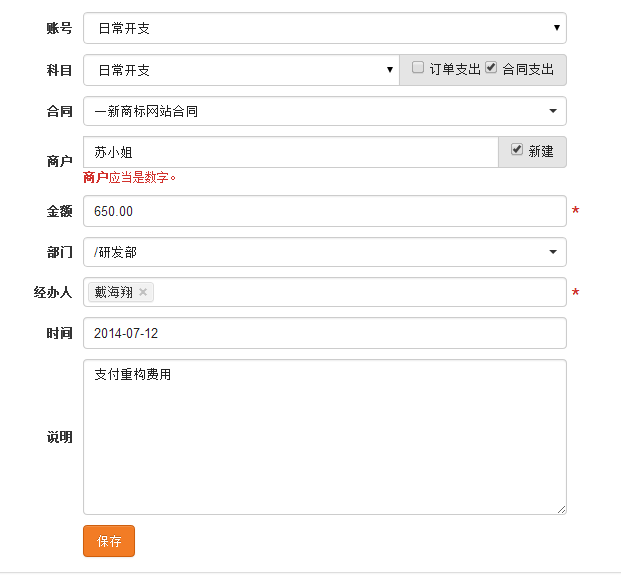 目前只看到录入时的新建商户,没看到维护的地方啊? 而且我勾选新建后,输入中文,提示说商户要数字?