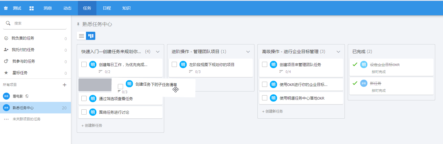 2. 任务也可以创建子任务。多人任务是时间维度上的管理,子任务则是空间上的管理,把相关的任务放在一起。