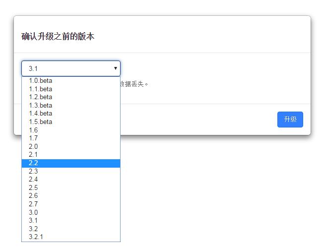 不管我是选择2.2还是3.1版本,但是都升级不成功 选择2.2后见下图:
