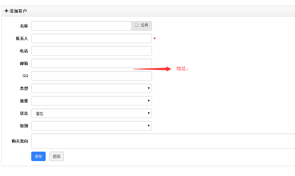 一、添加新客户处增加一个“地址”