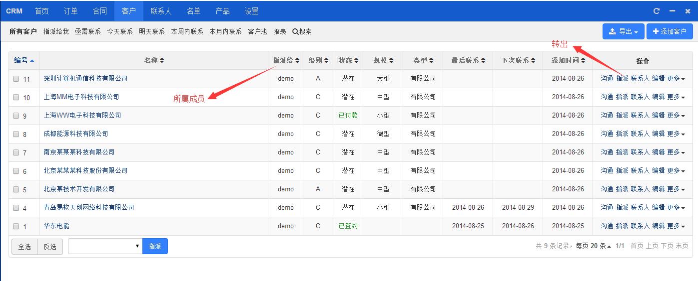 2、客户有指派给、客户池概念,建议按指派给去操作。