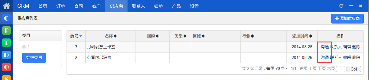 创建供应商之后,是可以随时进行添加沟通记录的。